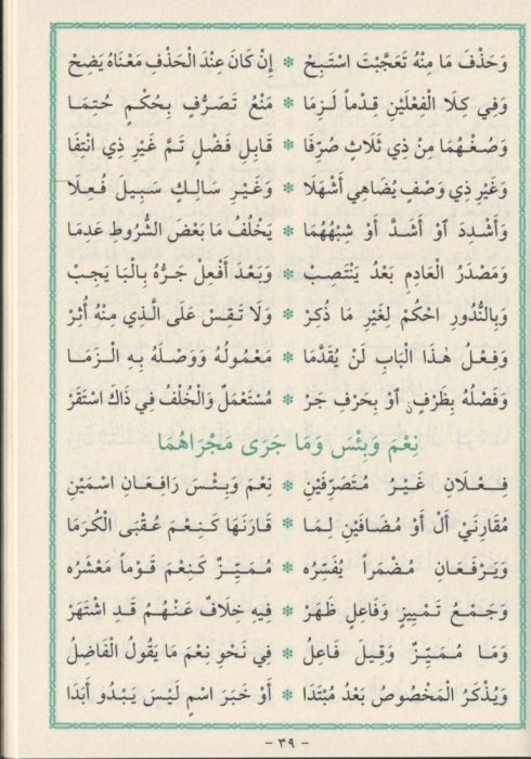 "İbn Mâlik'in Elfiye'si", 13. yüzyılda Endülüs doğumlu dil bilgini İmam Muhammed bin Abdullah bin Mâlik tarafından kaleme alınmış, Arapça dilbilgisi kurallarını kapsayan 1000 beyitlik manzum bir eserdir. Bu eser, Arap dili ve edebiyatı alanında temel kaynaklardan biri olarak kabul edilir ve yüzyıllar boyunca medreselerde ders kitabı olarak okutulmuştur. Elfiye, konuları sistematik bir şekilde ele alarak, öğrencilerin dil bilgisi kurallarını ezberlemelerini ve anlamalarını kolaylaştırır. Eserin birçok şerhi ve haşiyesi yazılmış olup, bu da onun ilmi değerini ve eğitimdeki önemini göstermektedir. Arap dili ve edebiyatı alanında eğitim gören öğrenciler ve bu alanda araştırma yapan akademisyenler için vazgeçilmez bir kaynaktır.