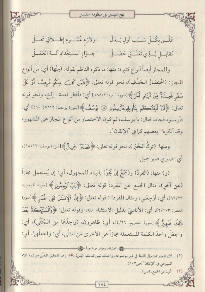 "Nehcüt Teysir ala Menzumetüt Tefasir" eseri, Kur'an ilimleri alanında önemli bir kaynak olup, özellikle tefsir ilminin temel kavramlarını sistematik bir şekilde ele alır. Eser, tefsir ilminin anlaşılmasını kolaylaştırmak amacıyla yazılmış olup, öğrenciler ve araştırmacılar için değerli bir başvuru kaynağıdır. Kitap, kaliteli baskısı ve kullanışlı boyutuyla hem bireysel çalışma hem de sınıf içi kullanım için uygundur. Tefsir ilmiyle ilgilenen herkes için tavsiye edilen bir eserdir.