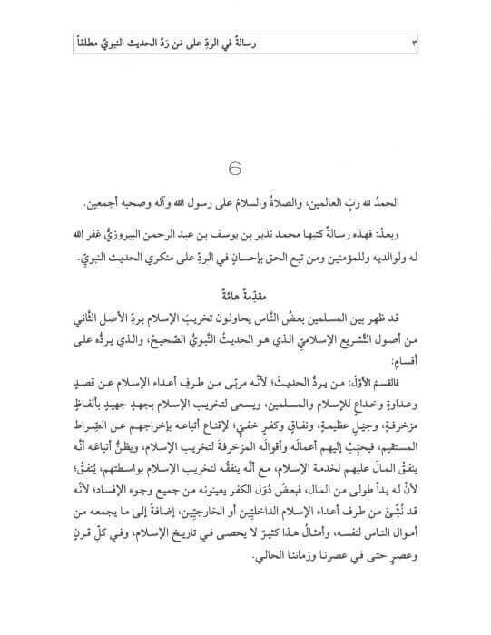 Risaletun fi raddi ala men raddel hadis en nebevi mutlakan | رسالة في الرد على من رد الحديث النبوي مطلقا
