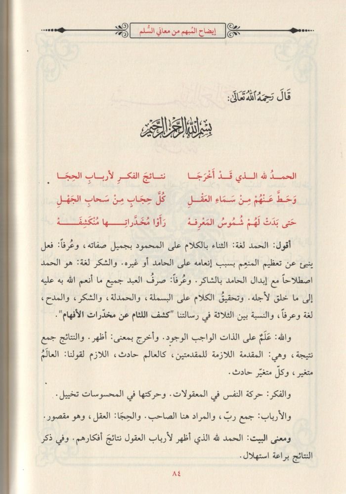 “Şerhu Süllêmü’l-Munevrek”, Cezayirli âlim el-Ahdarî’nin mantık ilmine dair yazdığı klasik metin olan “Süllêmü’l-Munevrek” üzerine yapılan önemli bir şerhtir. Bu eser, Arapça mantık eğitiminin temel taşlarından biri olup, medrese müfredatlarında hâlâ aktif biçimde okutulmaktadır. Şerh, öncelikle tasavvur ve tarif konularıyla başlar; ardından tasdik, hüküm, kıyas ve mantıksal çıkarımlar konularına geçilir. Müellif, her kavramı sade bir dille açıklamış ve karmaşık terimleri örneklerle somutlaştırmıştır. Bu açıklamalar, öğrencilerin teorik bilgileri pratiğe dönüştürmelerine yardımcı olur. Eser, sadece mantık öğrencileri için değil, usûl-i fıkıh ve belagat gibi alanlarda çalışanlar için de yol göstericidir. Açık anlatımı ve sistematik yapısıyla, hem temel mantık ilkelerini kavratır hem de eleştirel düşünmeyi geliştirir.