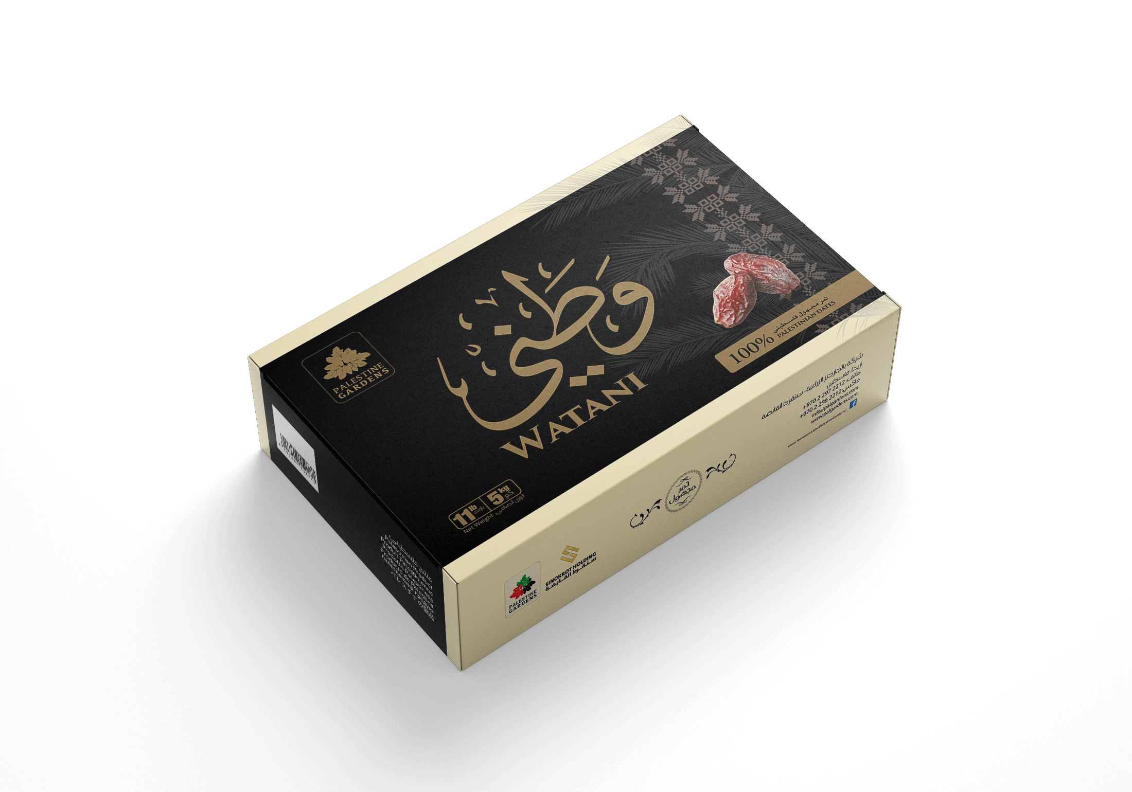 Palästinensische Medjoul-Datteln von hoher Qualität. Die Marke âWataniâ ist eine spezialisierte Marke fĂźr den Verkauf auf dem lokalen palästinensischen Markt. Erhältlich in 1-kg- und 5-kg-Packungen, in kleinen und groĂen GrĂśĂen.